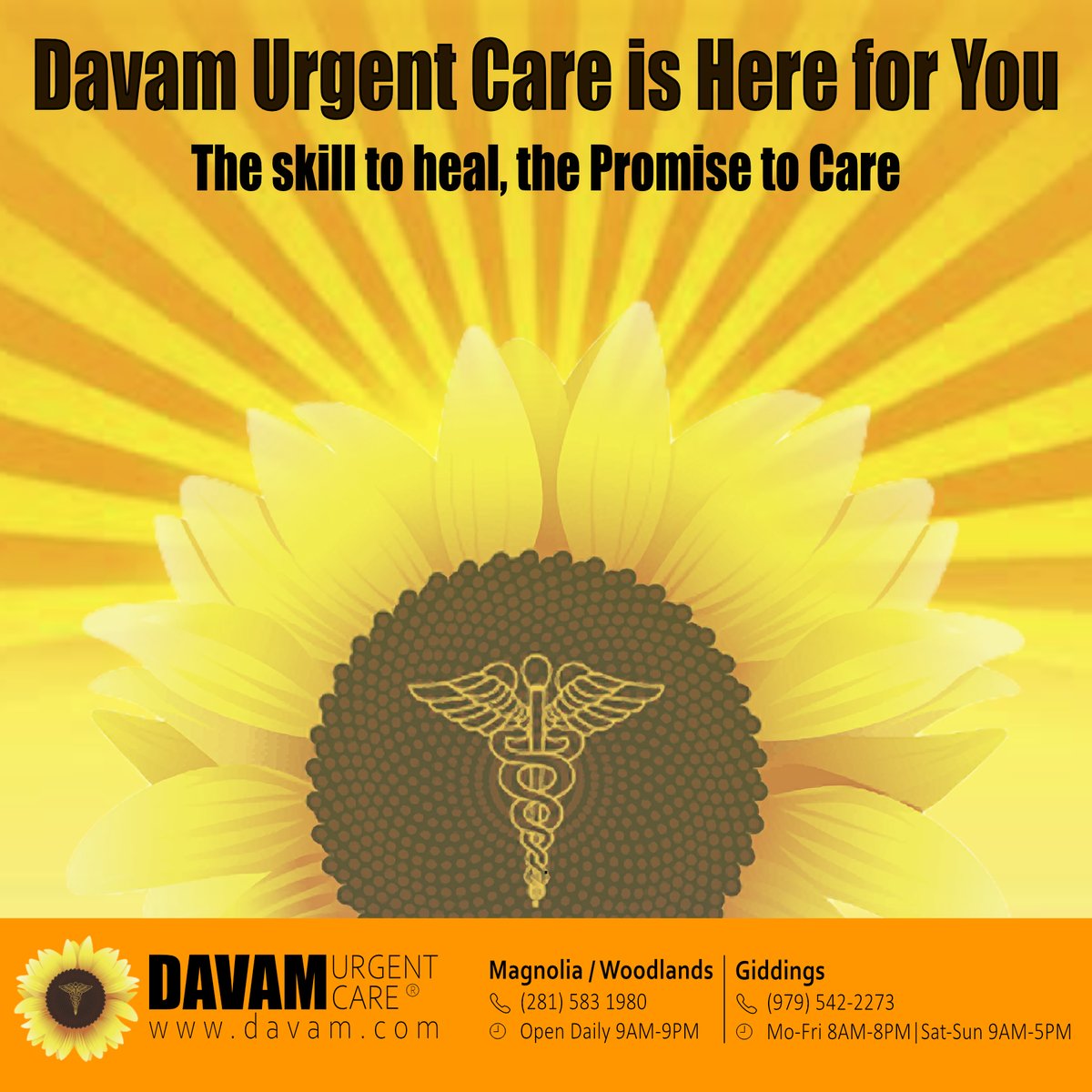 Davam urgent care is open daily in magnolia, tx and giddings, tx. They are open today from 8:00am to 8:00pm, helping you get immediate care. Davam urgent care was founded in may 2014 by experienced physicians who wanted to provide the residents of the woodlands, tx, and.
